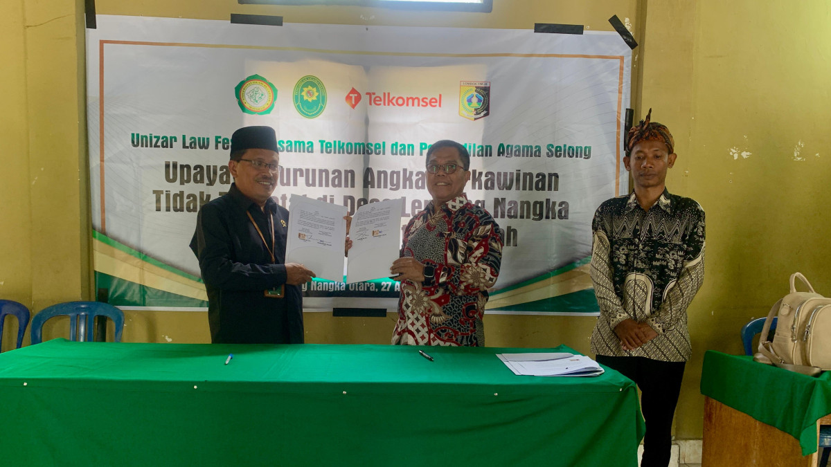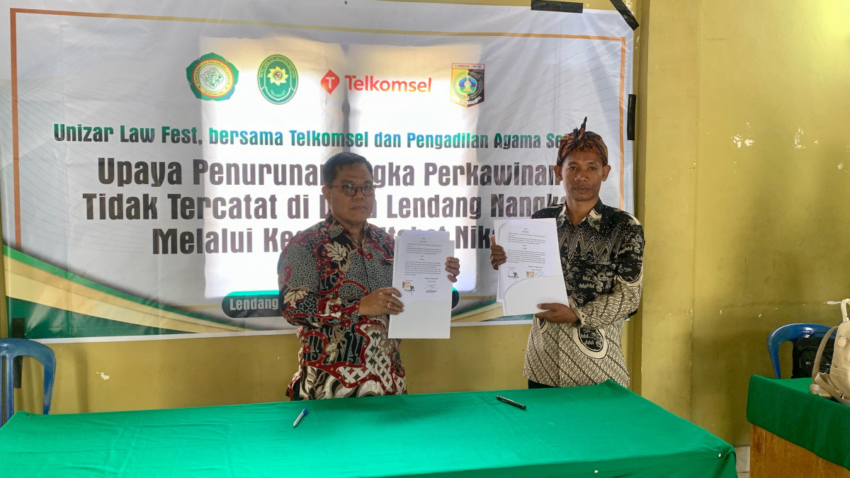 Fakultas Hukum Universitas Islam Al-Azhar (FH UNIZAR) bersama Pengadilan Agama Selong dan didukung pula oleh Telkomsel Mataram menyelenggarakan UNIZAR Law Fest dengan tema “Upaya Penurunan Angka Perkawinan Tidak Tercatat di Desa Lendang Nangka Melalui Kegiatan Itsbat Nikah”, pada hari Rabu, 27 Agustus 2024 yang bertempat di Aula Kantor Desa Lendang Nangka Utara, Kabupaten Lombok Timur Provinsi Nusa Tenggara Barat. UNIZAR Law Fest ini menyelenggarakan 3 (tiga) bentuk kegiatan yang disambut antusias dari para warga desa yaitu itsbat nikah gratis untuk warga lendang nangka, layanan konsultasi hukum gratis serta penawaran usaha dari Telkomsel. Kegiatan ini juga dirangkaikan dengan penandatanganan Memorandum of Agreement (MoA) antara FH UNIZAR dengan Pengadilan Agama Selong dan Memorandum of Agreement (MoA) antara FH UNIZAR dengan Desa Lendang Nangka Utara sebagai upaya keberlanjutan kerjasama pengabdian kepada masyarakat setempat.